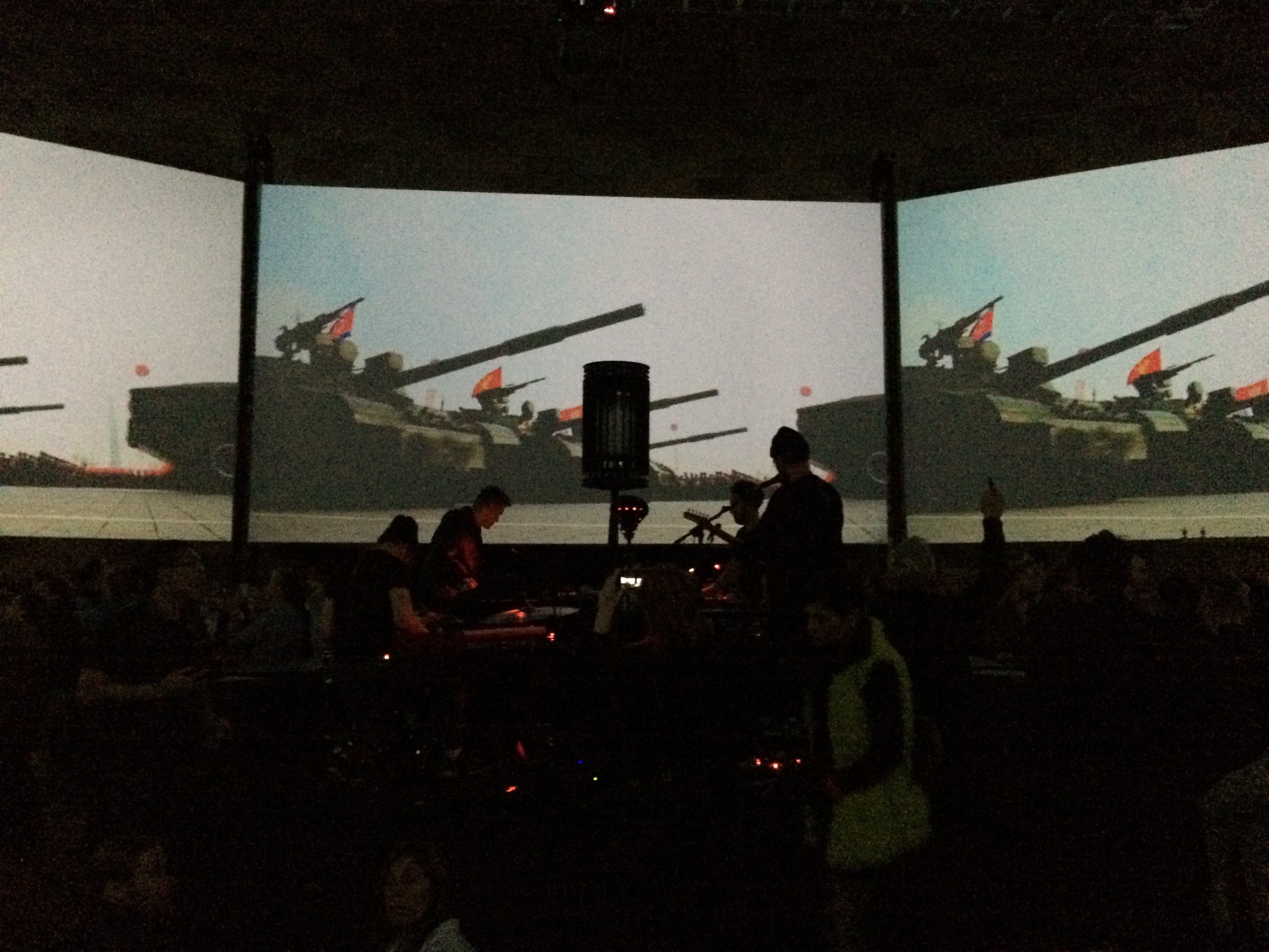 Co-directed by Smriti Keshari, Eric Schlosser, and Kevin Ford, The Bomb is a live multimedia installation that traces the history of nuclear weapons. It features an experimental documentary film that is projected on eight 30-foot screens that surround the audience, while electronic band The Acid perform a live score. Radiohead artist Stanley Donwood also created original animation for the piece. The work reminded us of Massive Attack V Adam Curtis, an ambitious site-specific event that bowed at the Park Avenue Armory in 2013 which also integrated film, music and politics. For the Curtis and Massive Attack project, the creators criticized wealth and politics over the last 30 years and tried to motivate the audience to action. The Bomb works similarly, but its focus is keenly on nuclear weapons.